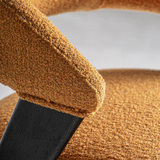 Стул, изготовленный из полиэстера горчичного цвета в сочетании с черным дубом и каучуковым деревом.