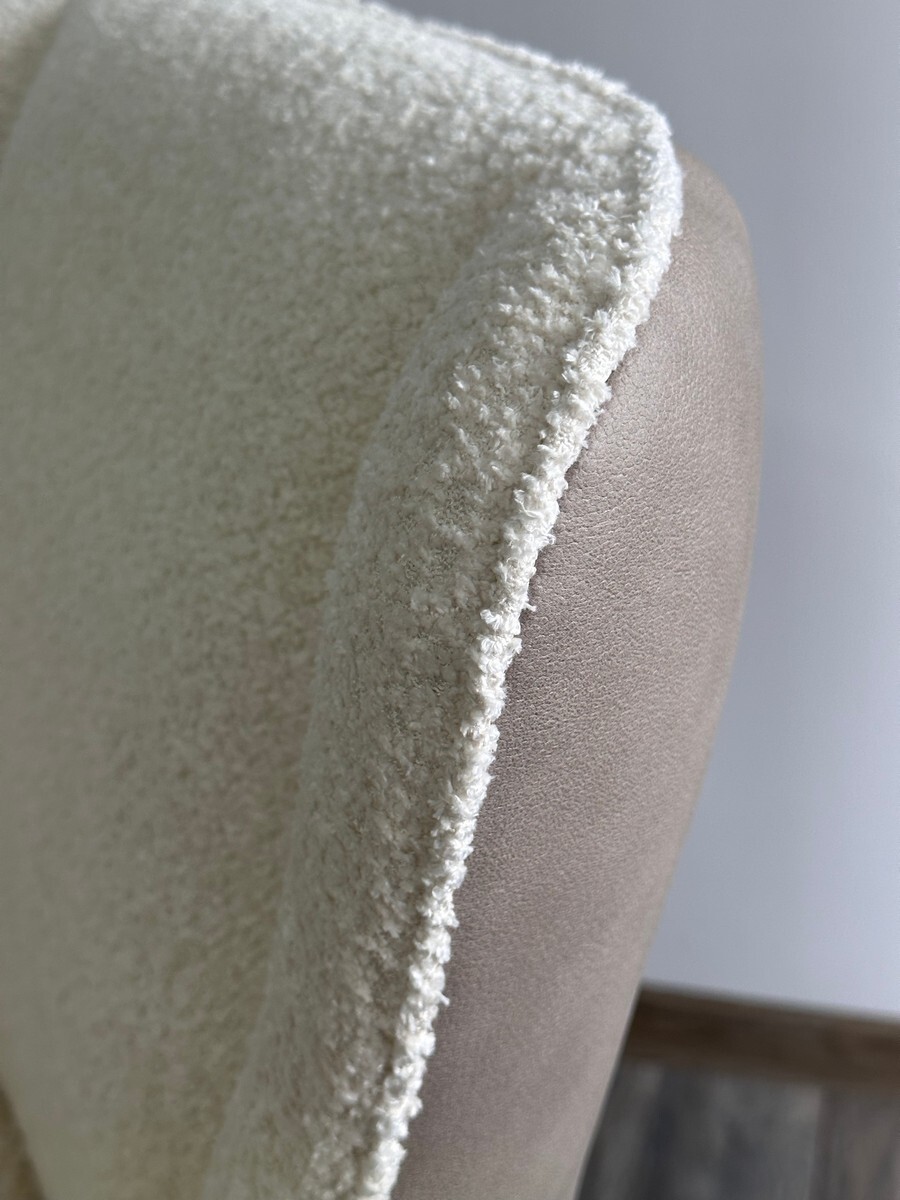 Обивка лицевой стороны стула - ткань букле белого цвета, тыльной стороны - экокожа светло-бежевого цвета.