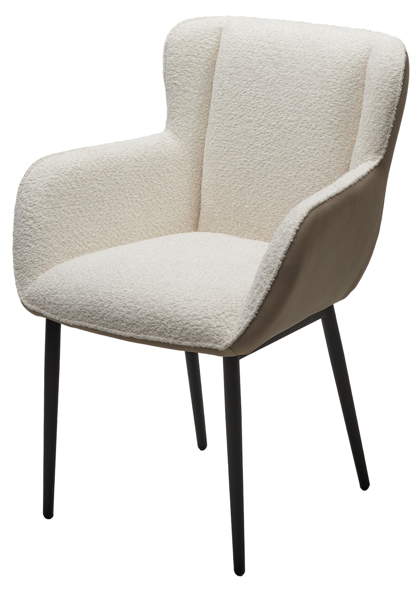 Обивка лицевой стороны стула - ткань букле белого цвета, тыльной стороны - экокожа светло-бежевого цвета.