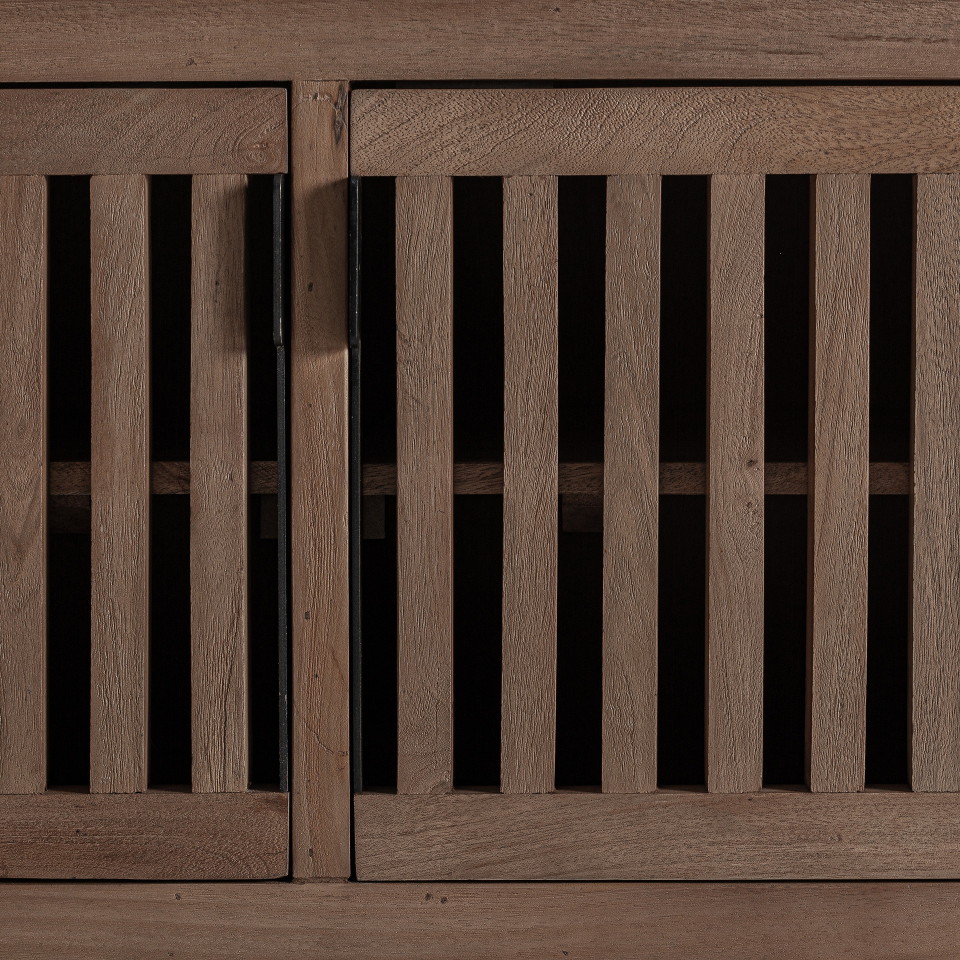Телевизионная тумба GABIA от VICALDESIGN сочетает в себе технологичность и элегантность. Благодаря своей внушительной длине и раздвижным дверцам с решетчатыми дверцами она обеспечивает устойчивую и комфортную опору, скрывая лишнее и подчеркивая главное. Её умиротворяющий вид гармонично дополняет повседневную жизнь, смягчая даже визуальное воздействие экранов, создавая уютную и гармоничную атмосферу. Ширина: 253 см, Глубина: 45 см, Высота: 54 см