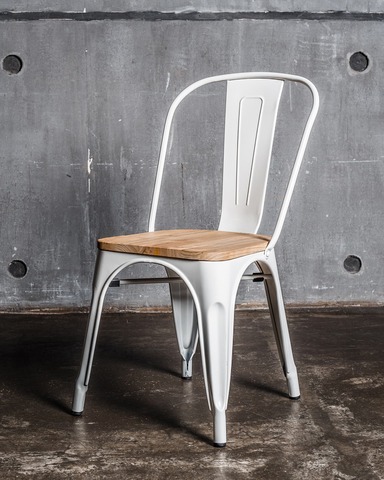 Стул Stool Group TOLIX WOOD белый глянцевый, основание и спинка оцинкованный металл, сиденье дерево