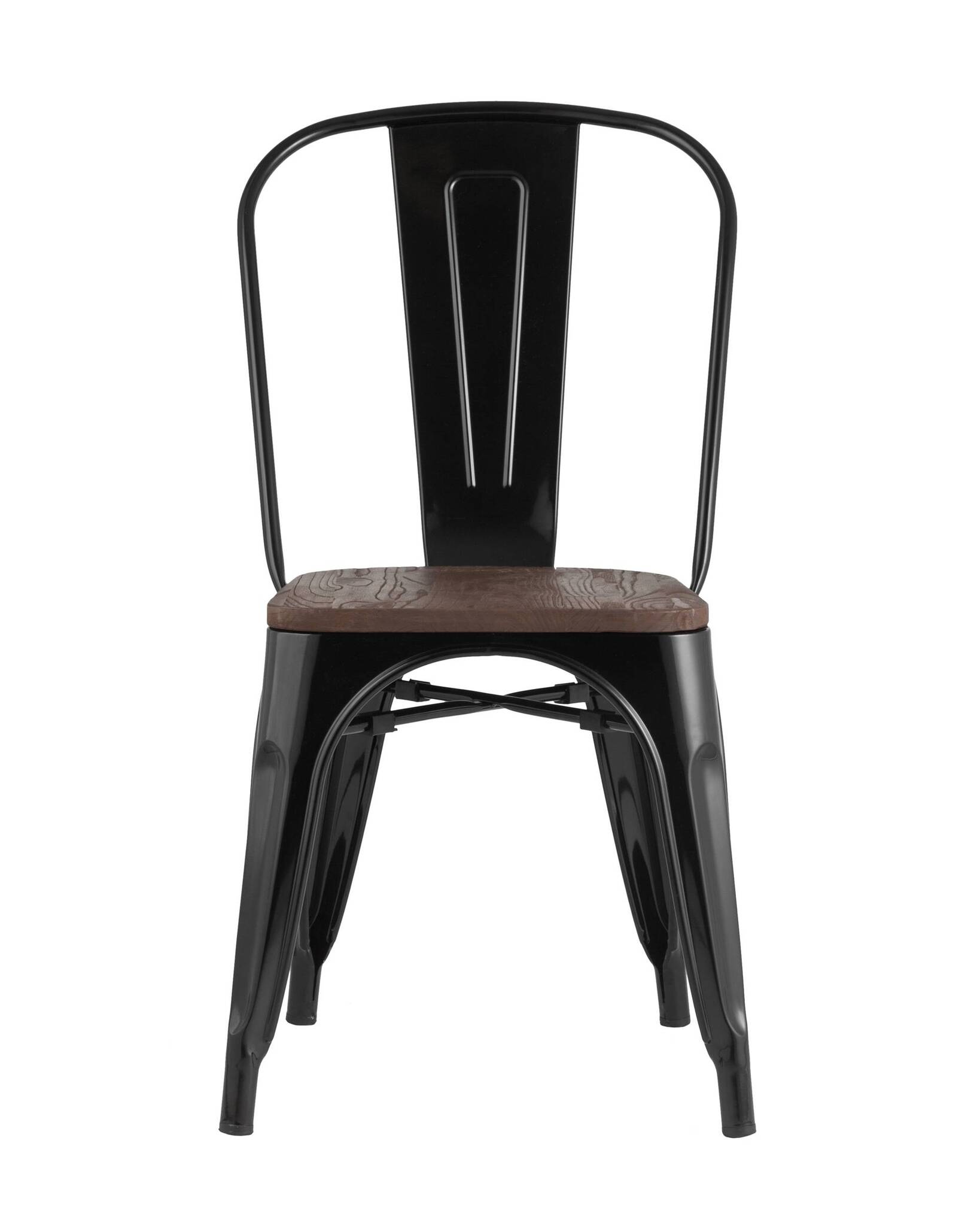 Стул Stool Group TOLIX WOOD черный глянцевый, основание и спинка оцинкованный металл, сиденье тёмное дерево