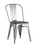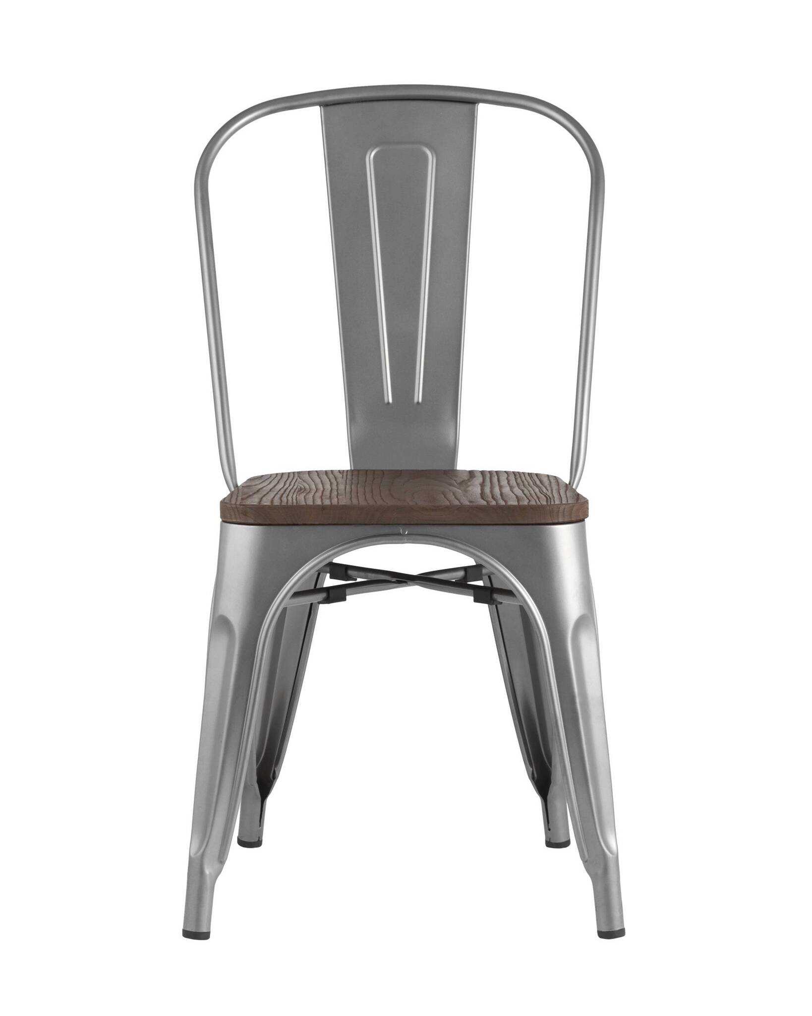 Стул Stool Group TOLIX WOOD серебристый матовый, основание и спинка оцинкованный металл, сиденье тёмное дерево