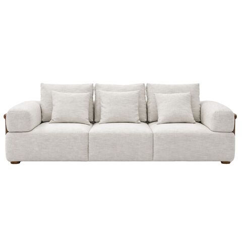 Современный трехместный диван, обитый тканью кремового цвета. Благодаря своему стилю и ножкам из дерева цвета ореха, этот диван добавит в ваш дом нотку авангардной элегантности, которую вы так цените. Модный диван, идеально подходящий для зоны отдыха, с оригинальной отделкой из орехового дерева.