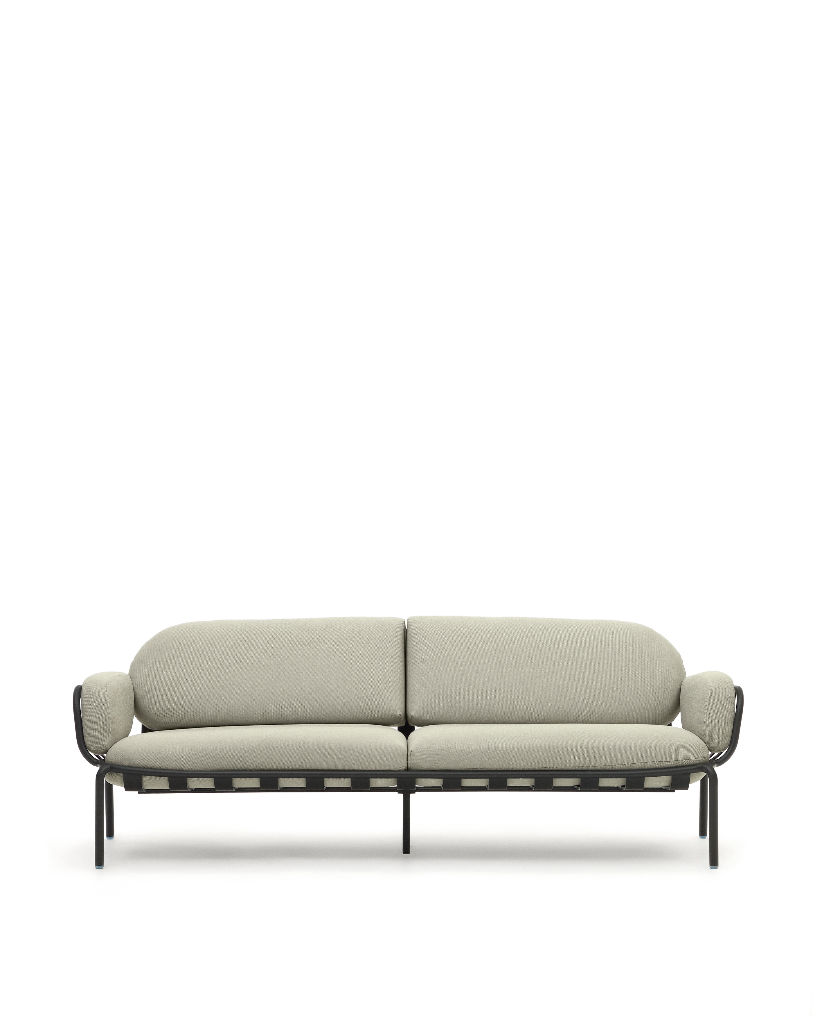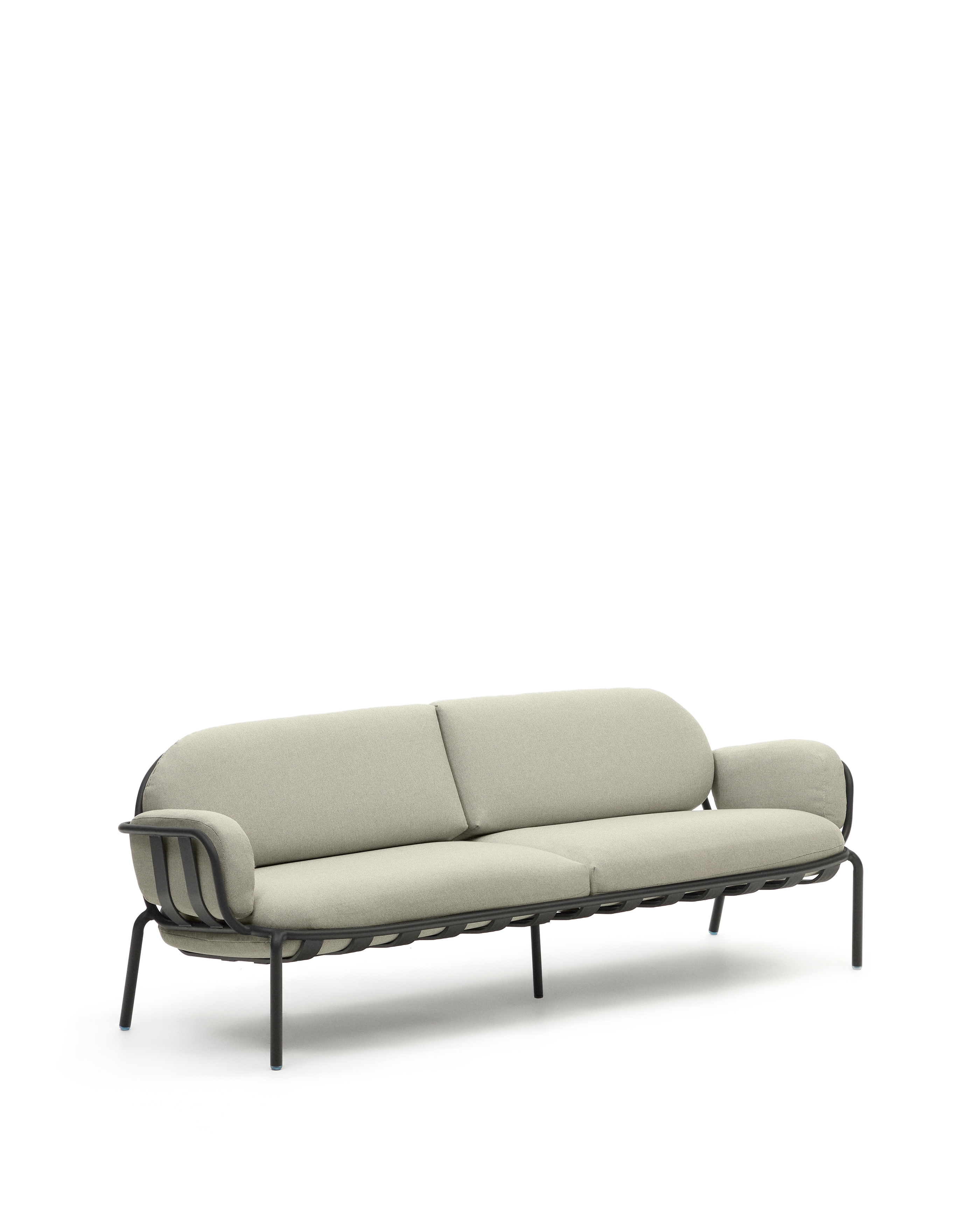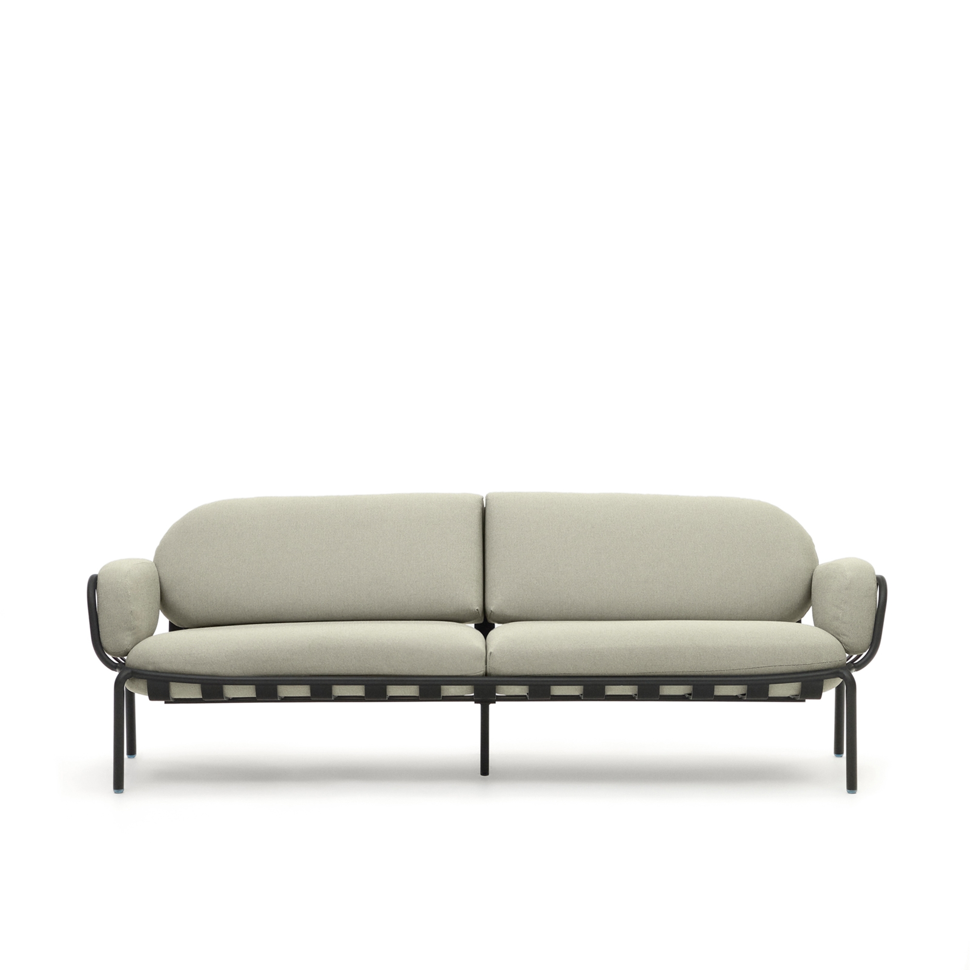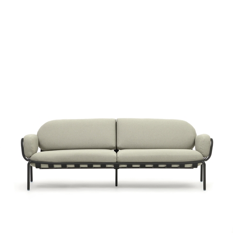 Трехместный уличный диван Joncols бежевый с графитовыми алюминиевыми ножками 225 см