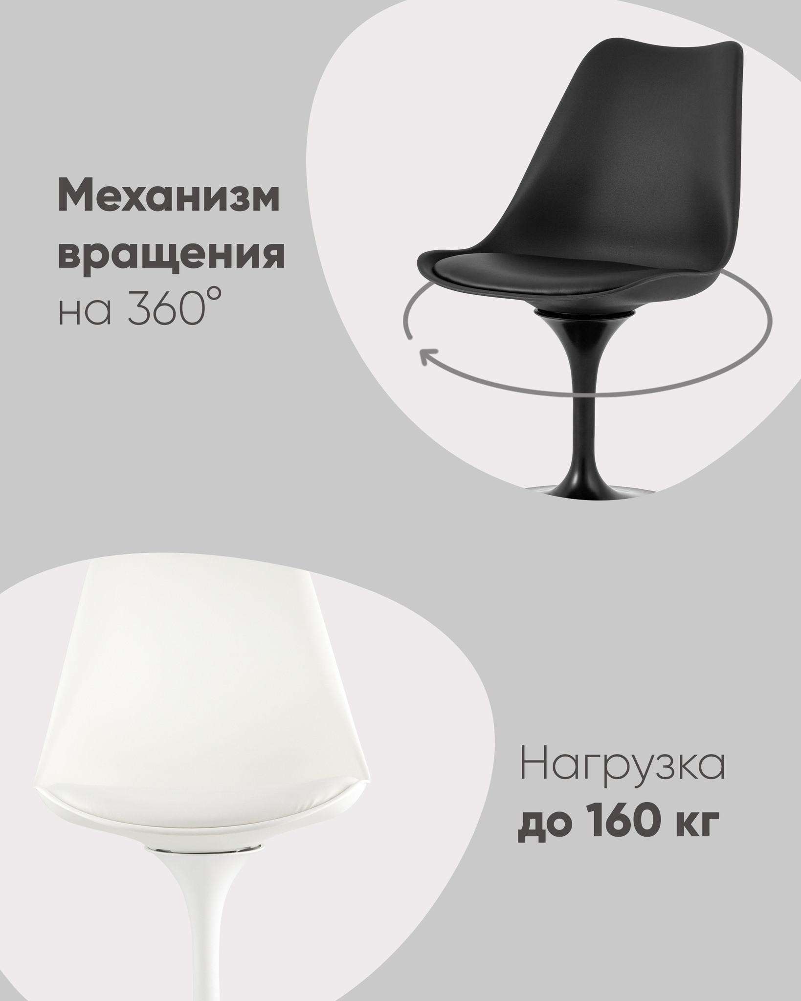 Стул Tulip черный, ножка металлическая, сиденье и спинка из пластика, сидушка мягкая из экокожи