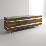 Тумба в современном американском стиле с отделкой натуральным шпоном Зирикот и контрастной стеклянной столешницей черного цвета. Уникальной особенностью коллекции является сохранение полноствольного рисунка дерева, проходящего через весь силуэт изделия. Материалы: МДФ, с внешней стороны - шпон зирикот, бесцветное минеральное масло, с внутренней стороны - шпон, полуглянцевый черный лак; столешница - стекло лакобель черный. Фурнитура - петли с механизмом tip-on. Конфигурация: 4 двери (полки). Изделие поставляется в собранном виде.