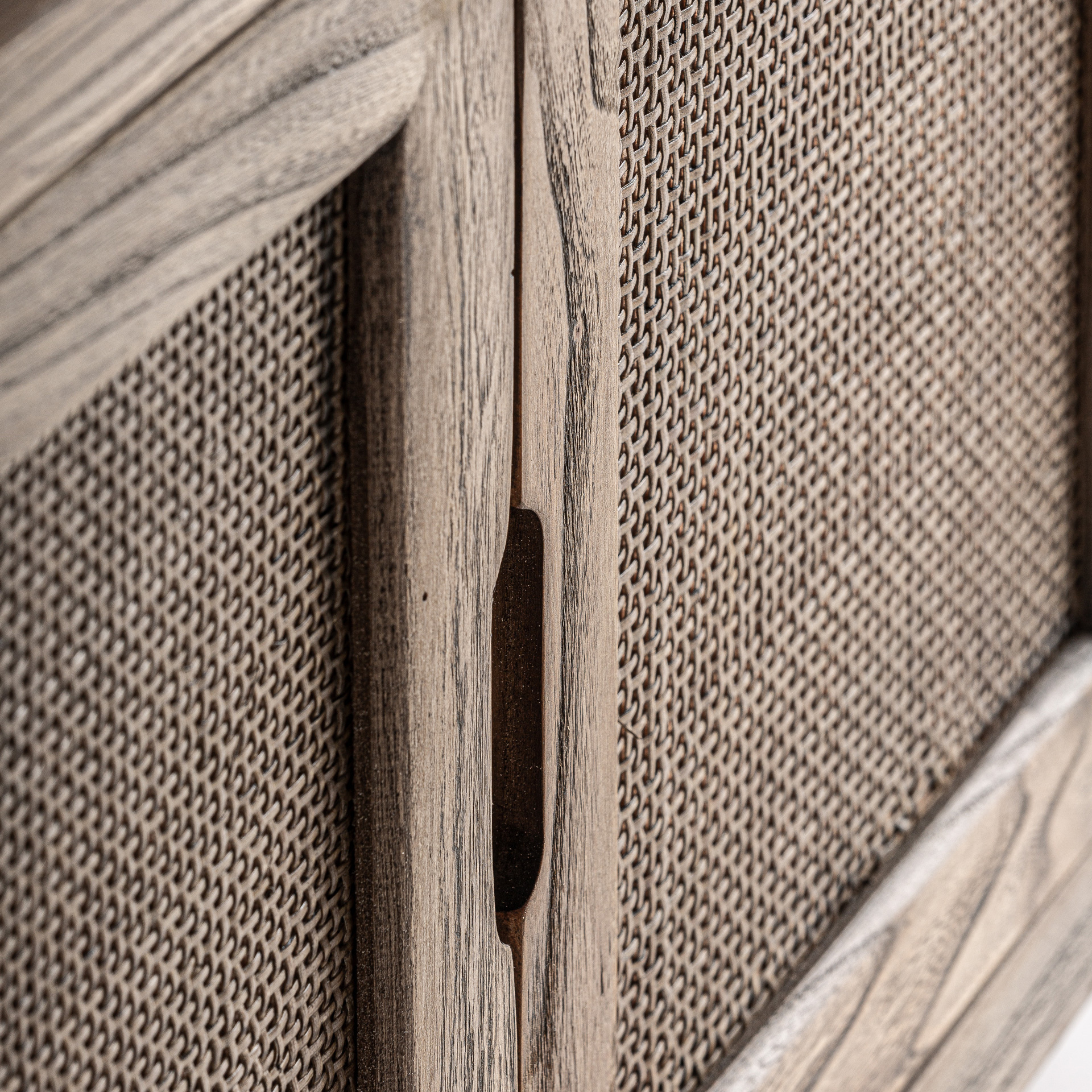 Тумба под телевизор, изготовлена из коричневого вяза. Ширина: 220 см, Глубина: 45 см, Высота: 60 см