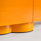 Тумба под телевизор Mirkov в современном стиле, изготовлена из оранжевого дерева DM с лакированной отделкой в сочетании с железом.