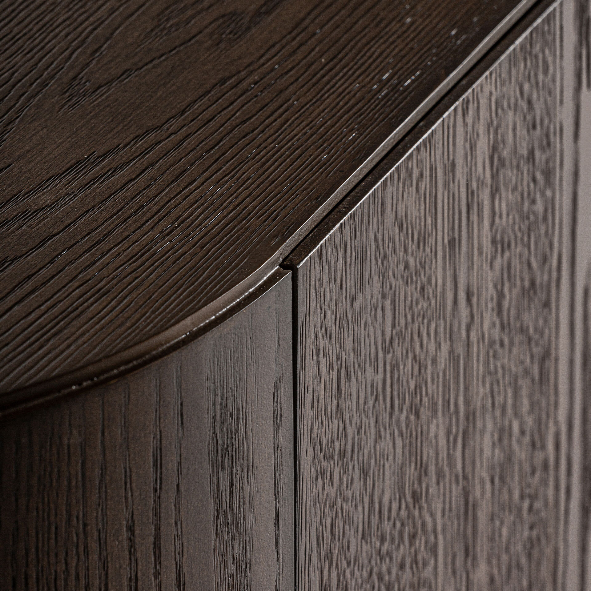Тумба под телевизор Treignac, коричнево-золотой цвет, стиль ар-деко. Изготовлен из древесины дуба в сочетании с бронзой. Съемное изделие. Ширина: 200 см, Глубина: 48 см, Высота: 55 см.