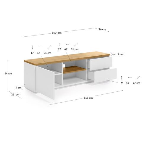 Тумба под ТВ Abilen шпон дуба и белый лак 150 x 44 cm
