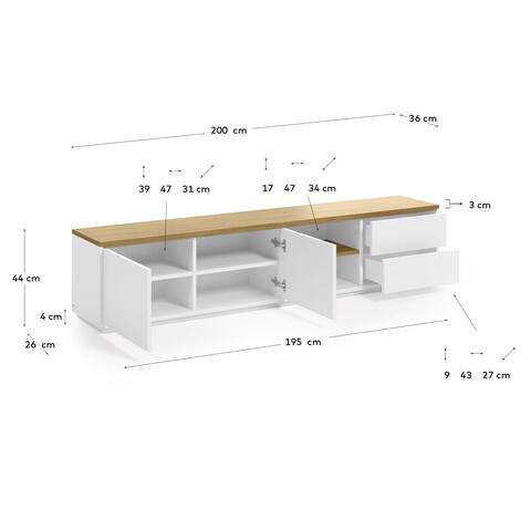 Тумба под ТВ Abilen шпон дуба и белый лак 200 x 44 cm