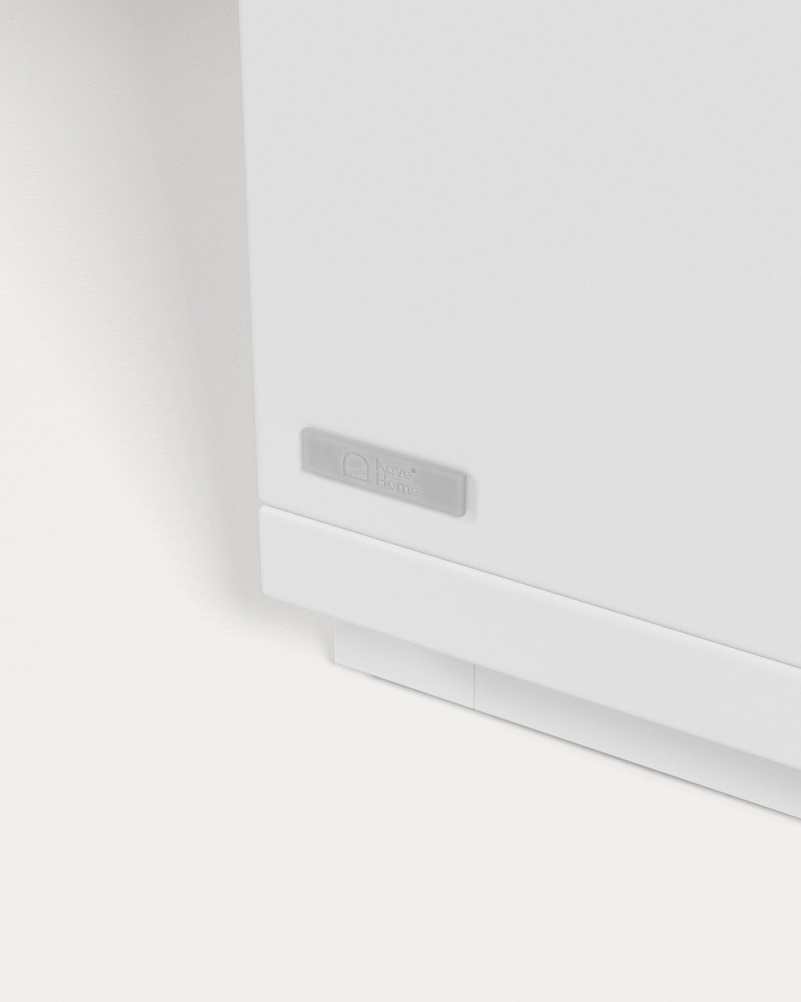 Тумба под телевизор размером 200 x 43,6 см с дубовым шпоном и дверцами в белом лаке. Двери и ящики с нажимной системой и рамой из МДФ.
