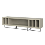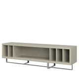 Тумба под телевизор из коллекции Vigo от MOD Interiors выполнена в современном европейском стиле. Глянцевый серо-бежевый лак создает атмосферу светлой гармонии, отражая свет и наполняя пространство уютом и элегантностью. Полированные стальные акценты добавляют блеск, подчеркивая современность и стиль. Благодаря продуманным открытым полкам эта тумба позволяет удобно организовать ваши медиа-аксессуары. Чистые линии и сбалансированные пропорции делают Vigo центром притяжения вашего интерьера, олицетворяя современный минимализм и создавая неповторимую атмосферу. Модель изготовлена из высококачественной МДФ высокой плотности. Ножки — из высококачественной полированной стали.