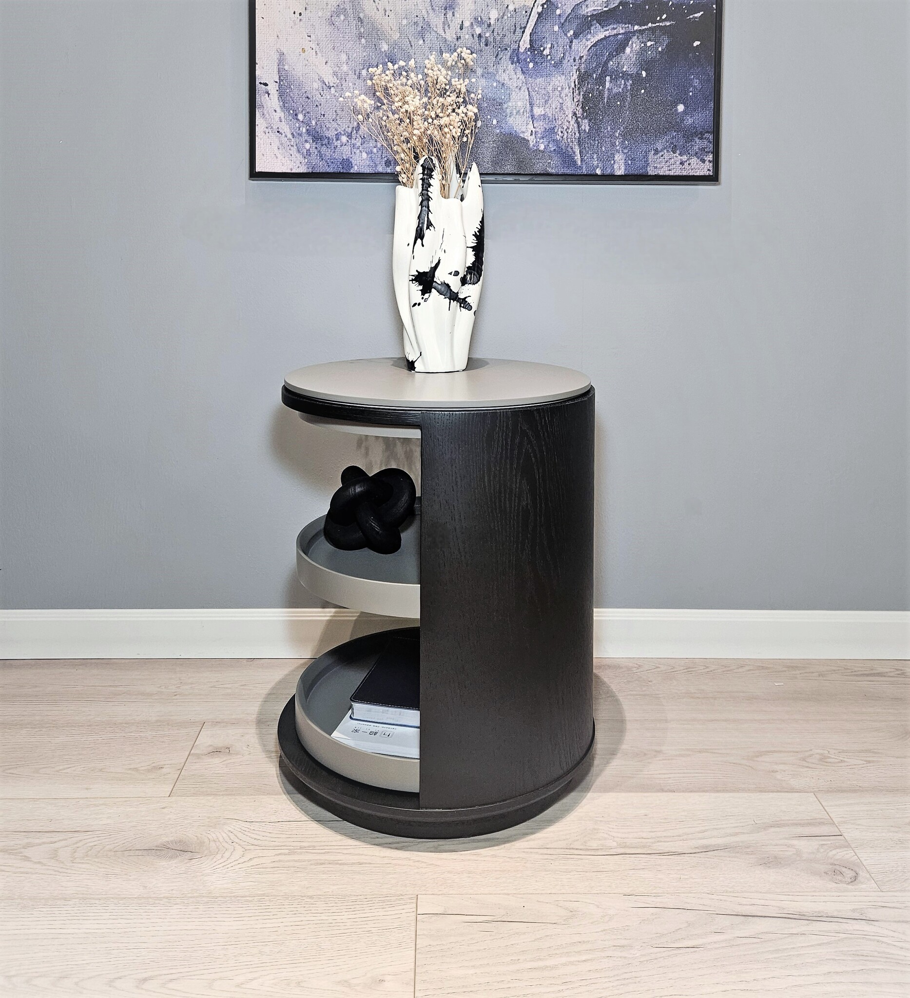 Оригинальная поворотная тумба будет одинаково хорошо смотреться в вашей гостиной в качестве придиванного столика или в вашей спальне в качестве прикроватной тумбы.