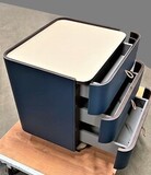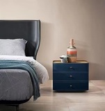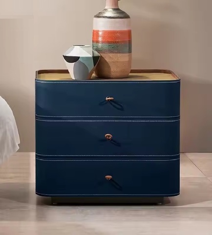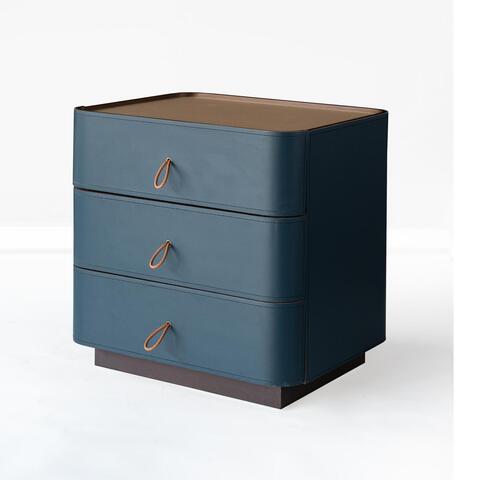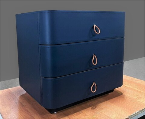 Тумба представлена в экокоже синего цвета.