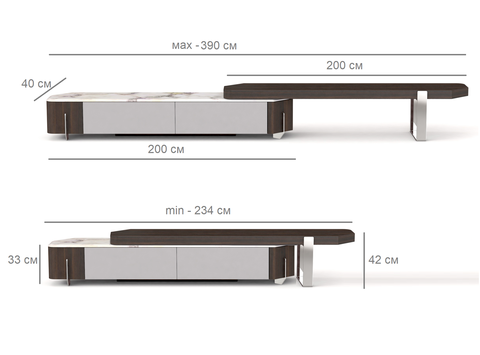 2. Вторая часть — столешница из натурального шпона, которая может сдвигаться влево или вправо над основной частью тумбы.