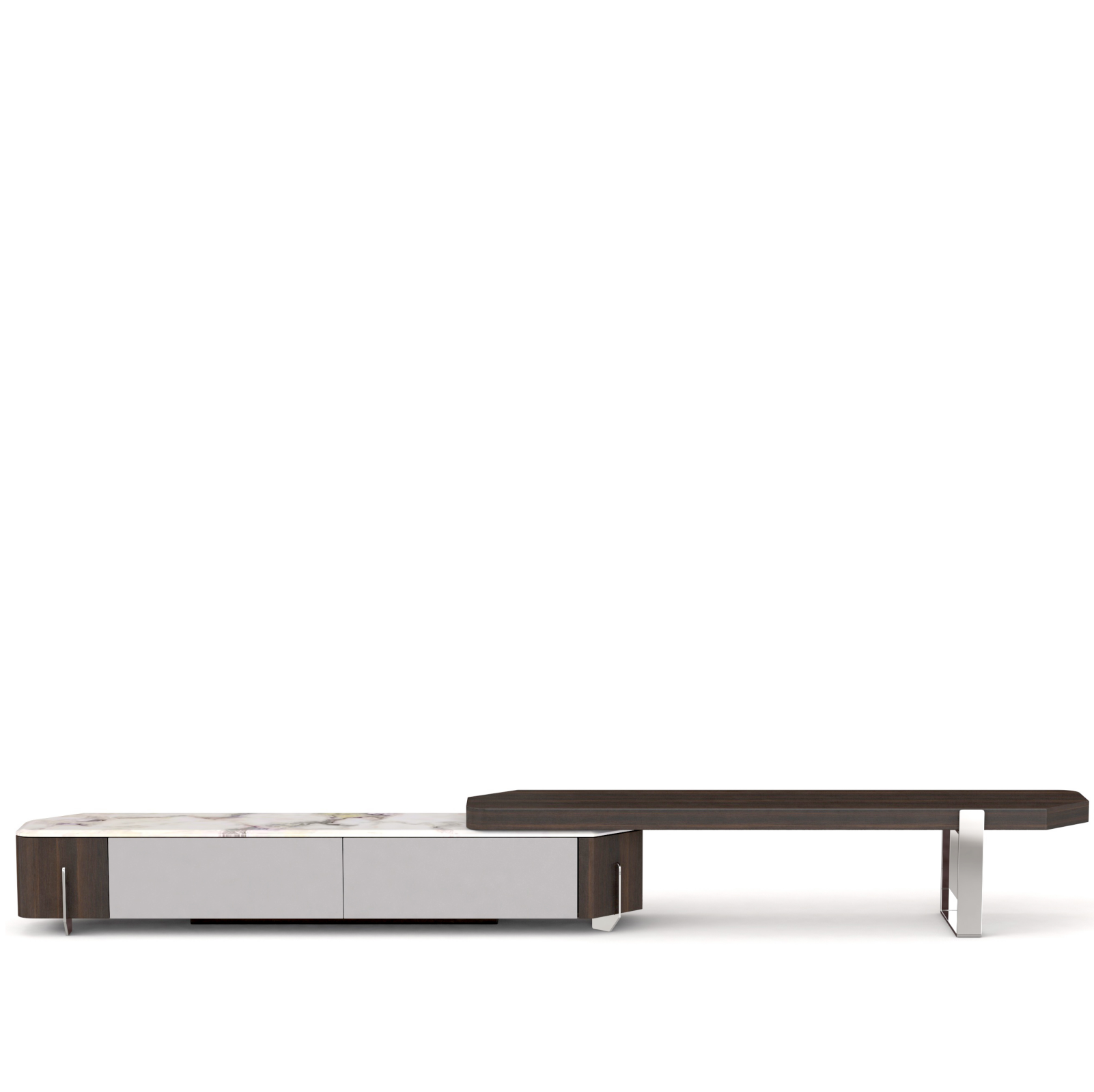 Тумба TV идеально сочетает эстетику и функциональность, предлагая пространство для хранения мультимедийных устройств и декоративных элементов.