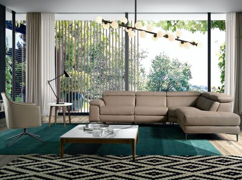 Угловой диван с реклайнером 5320-R /6043 кожаный бежевый