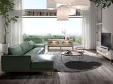 Угловой диван с левым шезлонгом 6200/5607-L-M5677 из зеленой кожи