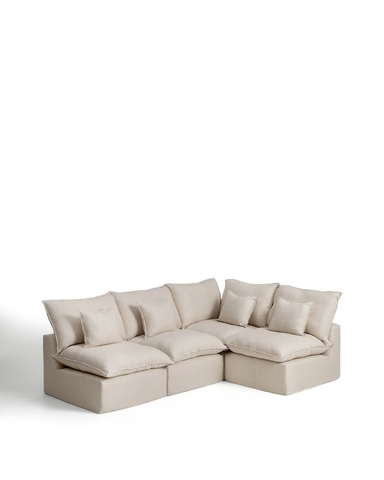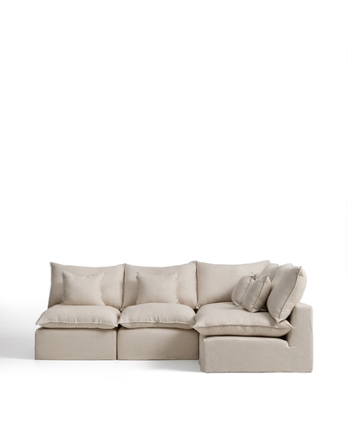 Угловой модульный диван Anarela на 4 места со съемными чехлами из бежевого льна и вискозы, 287 x 197