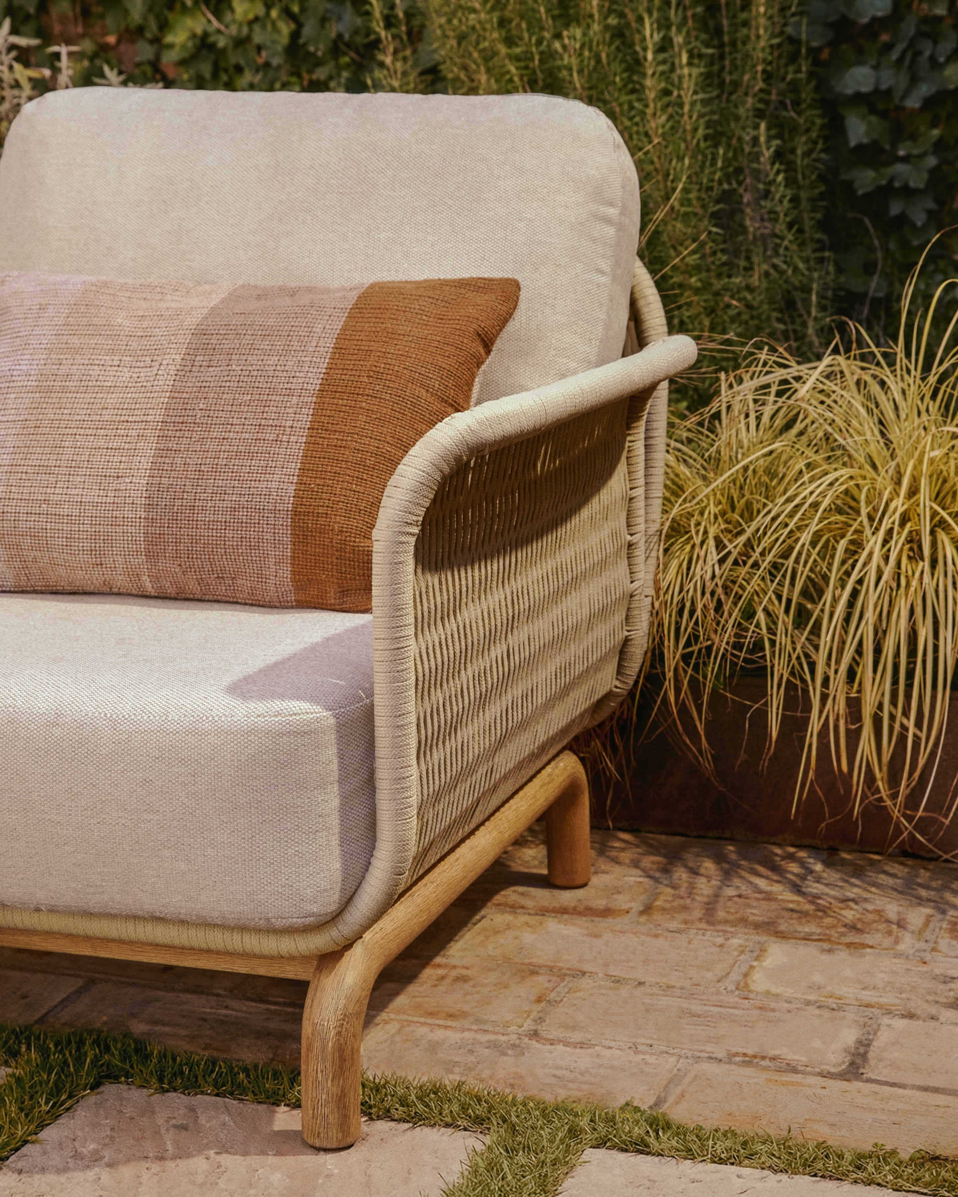 Уличное кресло Alipa из акации и веревки цвета экрю