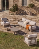 Коллекция Nerano создана для использования как на открытом воздухе, так и в помещении. Ее алюминиевая конструкция легкая и прочная, сохраняет цвет и форму, защищая от ржавчины, коррозии и воздействия солнечных лучей. Подушки легко снимаются, имеют съемные чехлы и могут быть удобно убраны, когда не используются или в дождливую погоду. В комплект также входят пластиковые защитные накладки на ножки, которые предохраняют пол и сохраняют поверхность в хорошем состоянии на протяжении длительного времени.