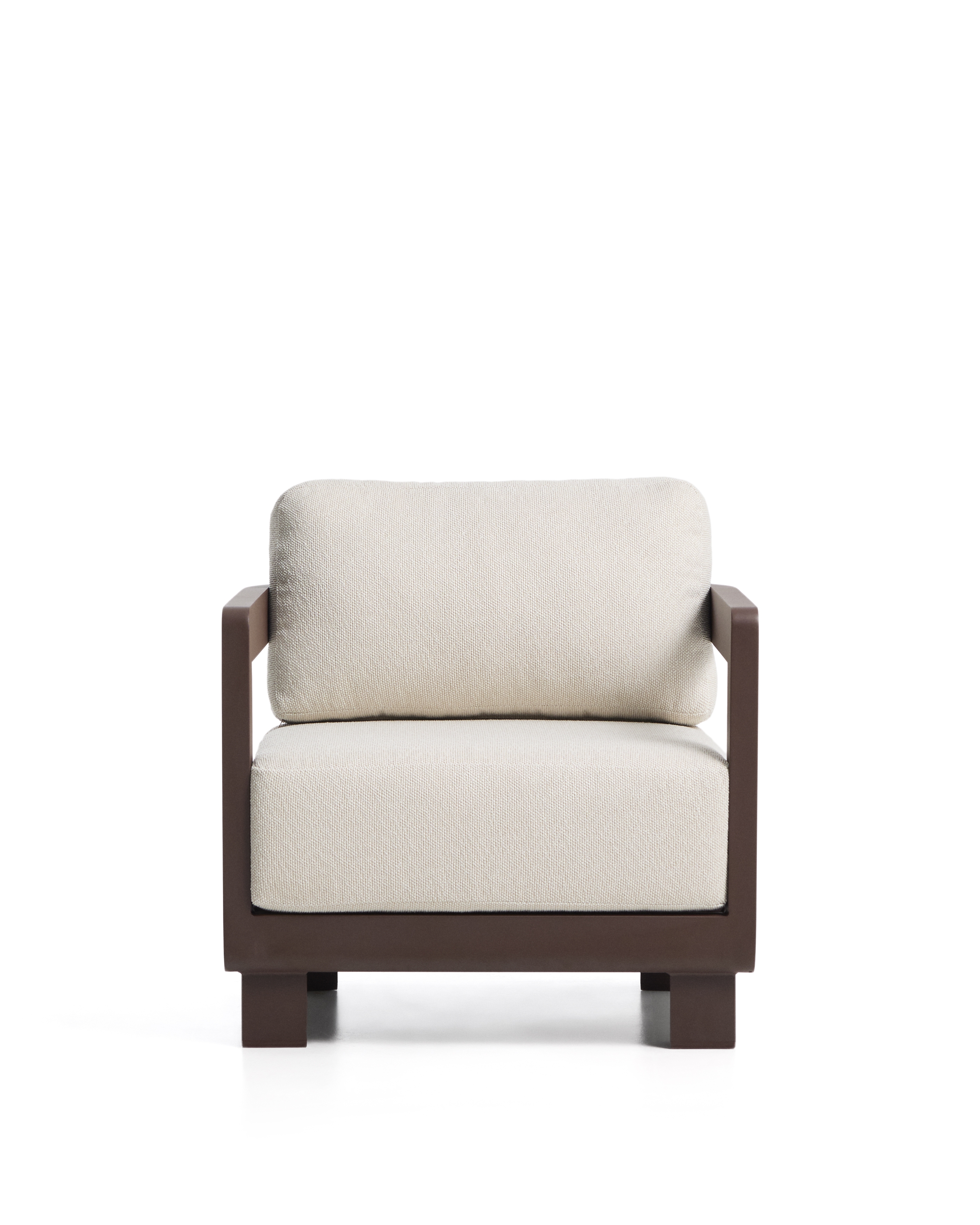 Коллекция Nerano создана для использования как на открытом воздухе, так и в помещении. Ее алюминиевая конструкция легкая и прочная, сохраняет цвет и форму, защищая от ржавчины, коррозии и воздействия солнечных лучей. Подушки легко снимаются, имеют съемные чехлы и могут быть удобно убраны, когда не используются или в дождливую погоду. В комплект также входят пластиковые защитные накладки на ножки, которые предохраняют пол и сохраняют поверхность в хорошем состоянии на протяжении длительного времени.