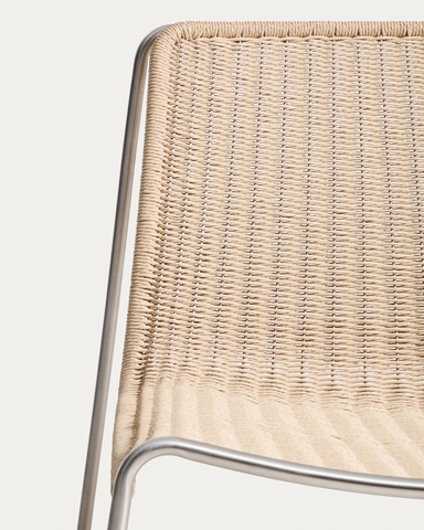Штабелируемое кресло Tavari сочетает в себе легкость и прочность, создавая изделие, предназначенное для отдыха на открытом воздухе круглый год. Сиденье, сплетенное вручную из бежевого синтетического шнура, добавляет текстуру и комфорт, а конструкция из нержавеющей стали с матовой отделкой обеспечивает стабильность и долговечность. Синтетический шнур выдерживает солнце, дождь и перепады температур, не теряя своей формы и цвета. Он также легко чистится, что делает его практичным выбором для использования на открытом воздухе. Нержавеющая сталь с диаметром трубки 16 мм и толщиной 2 мм обеспечивает прочную конструкцию, устойчивую к коррозии и влаге. Кресло предназначено для использования исключительно на открытом воздухе, оно штабелируется, что облегчает хранение и оптимизирует пространство, когда не используется.