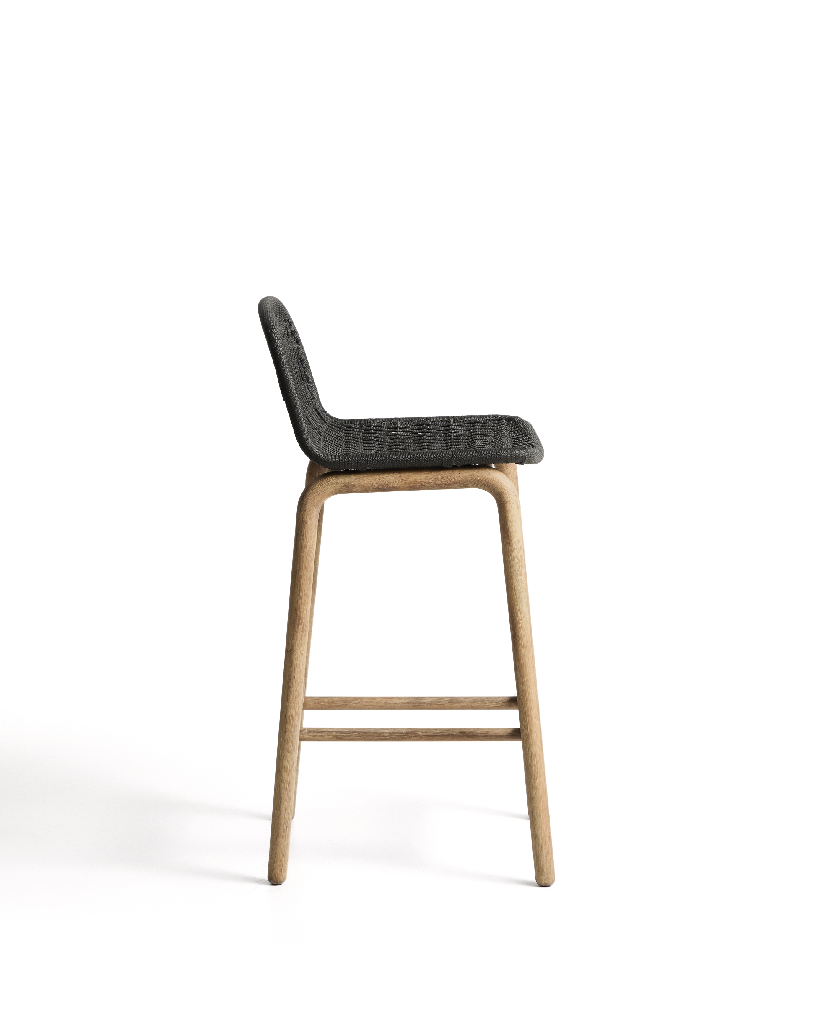 Уличный барный стул Alipa из акации и веревки темно-серого цвета, 75 см