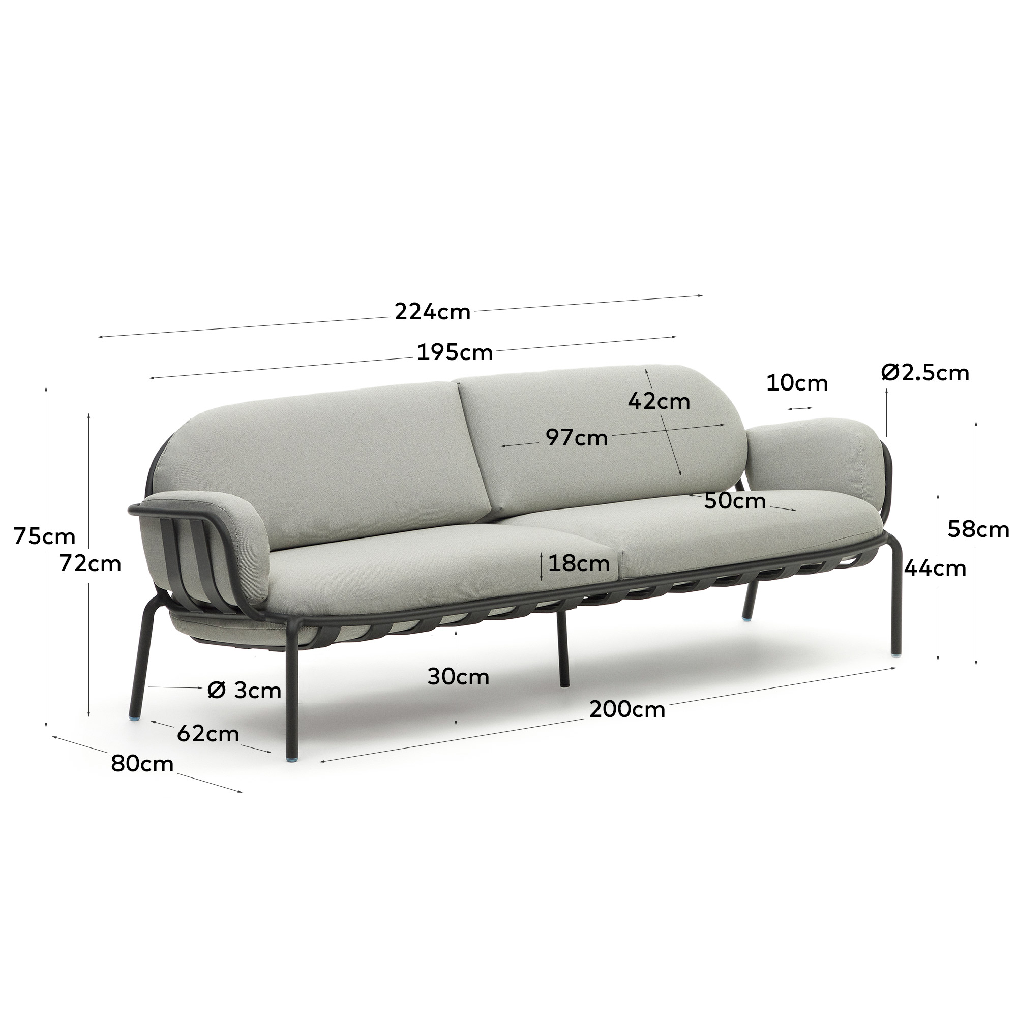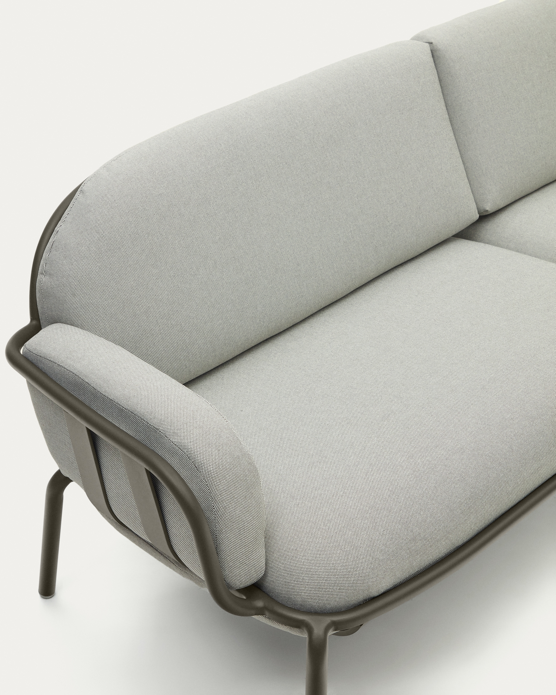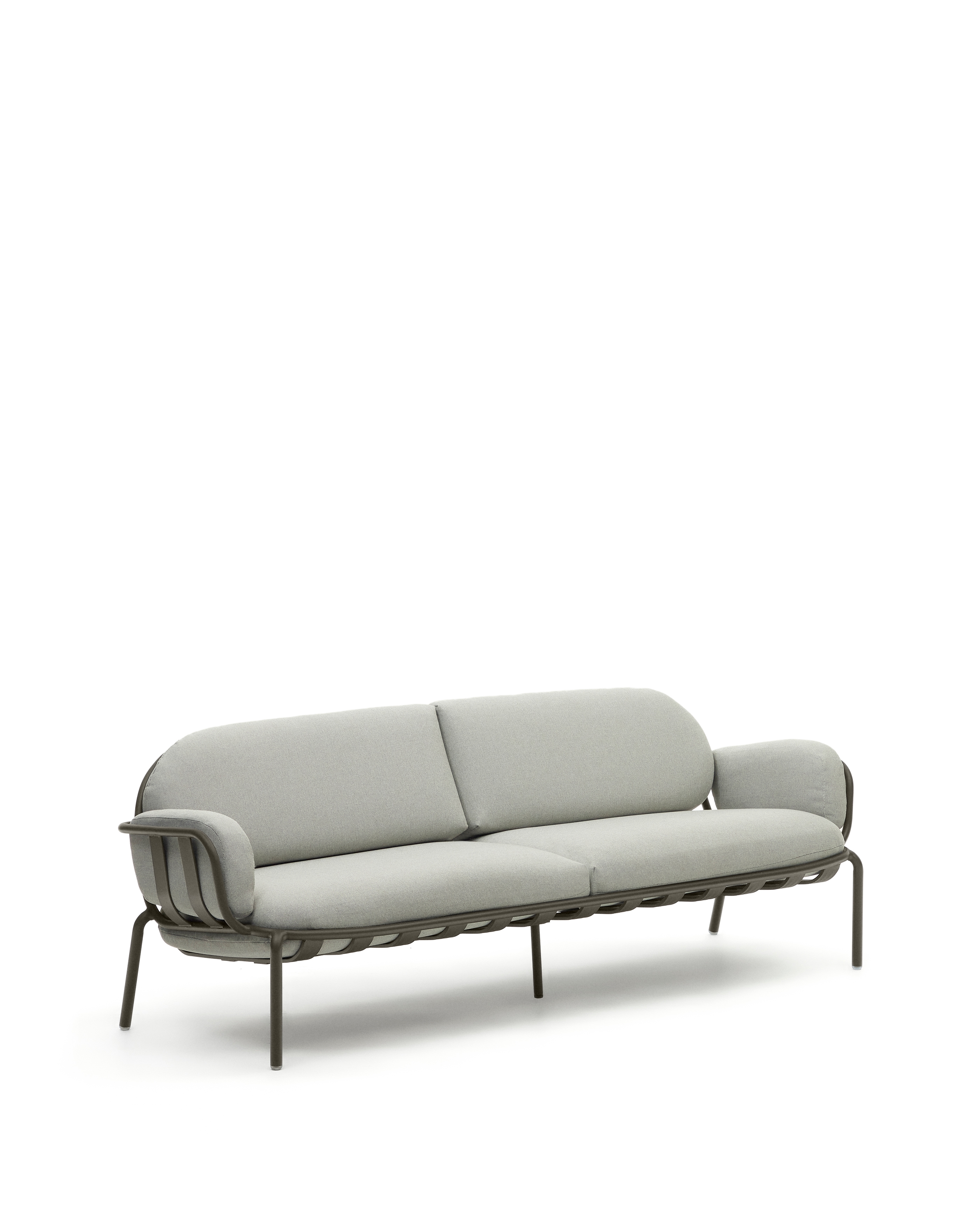 Уличный диван Joncols из серой ткани и зеленым алюминиевым каркасом 225 см