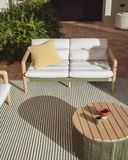 Диван Menfi изготовлен из массива акации и плетеного вручную веревочного шнура. Его дизайн отличается мягкими линиями и сбалансированными пропорциями, подчеркивающими ценность древесины и тщательность изготовления. Акация обладает высокой устойчивостью к влаге и микроорганизмам, что делает его долговечным изделием для использования на открытом воздухе. Веревочный шнур, обработанный для защиты от УФ-лучей, обеспечивает гибкость и комфорт, дополняя дизайн тонкой текстурой. Изготовленный из древесины, сертифицированной FSC™ на 100%, он подходит для использования в помещении.