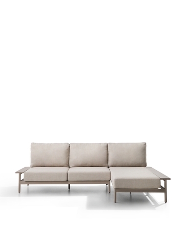 Уличный диван Vathi из бежевого алюминия с шезлонгом справа, 250 x 159 см