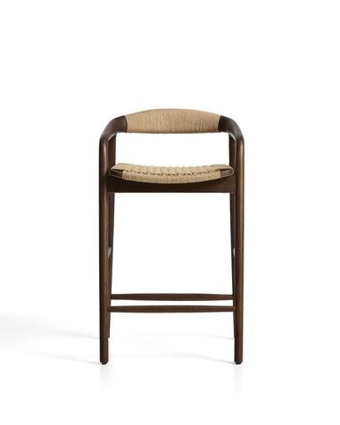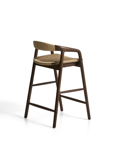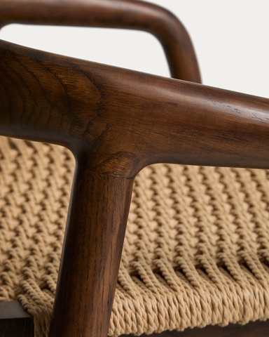 Уличный полубарный стул Derile из массива дуба в отделке орех и бежевой веревки