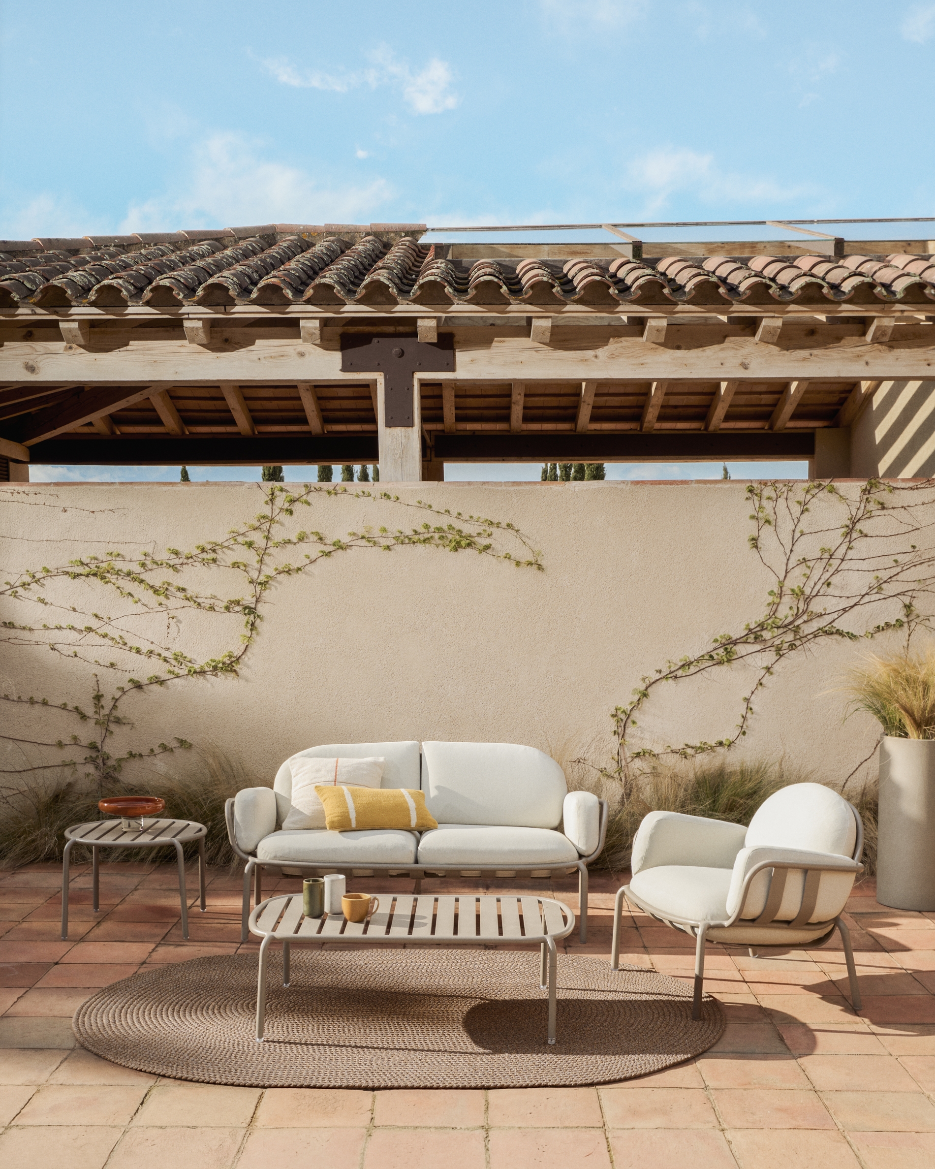 Разработанные студией Made Studio эксклюзивно для Kave Home, изделия Joncols берут за основу органические формы речных камней, переосмысленные в современных и функциональных элементах, подходящих для использования на открытом воздухе. Они изготовлены из алюминия, имеют трубчатую конструкцию и плавно изогнутые линии, которые определяют их характер. Легкий и прочный алюминий подходит для длительного использования на открытом воздухе, устойчив к ржавчине, коррозии и воздействию солнечных лучей. Закругленные формы обеспечивают визуальную целостность и облегчают использование.