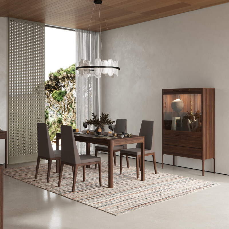 Витрина испанского бренда MOD Interiors с двумя стеклянными дверками, с 2 ящиками и подсветкой станет украшением любой гостиной в современном стиле. Корпус витрины изготовлен из высококачественного МДФ высокой плотности, Ножки и ручки - из массива дерева. Отделка - натуральный шпон грецкого ореха Timber Tobacco (Северная Америка) Ящики снабжены направляющими системы soft-close. Уникальная система последнего поколения добавляет невероятную плавность открывания/закрывания. Высота фасада ящиков 19.8 см Высота дверок 89.2 см Высота ножек 30 см Ширина каждой дверки 44.9 см