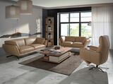 Вращающееся кресло с двумя независимыми электрическими механизмами релаксации. Обивка из бычьей кожи песочного цвета. Внутренняя структура из древесины сосны и прочное стальное основание, окрашенное черной эпоксидной смолой. Порт USB. Кожа - Arena M5668.