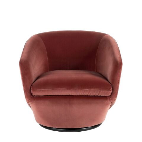 Кресло KF-A1032 от фабрики Angel Cerda — удивительный дизайн для стильного оформления интерьера. Это кресло взбудоражит даже самого искушенного любителя необычных дизайнерских вещей. То ли пуф, то ли стул, то ли кресло. Здесь дизайнеры понемногу взяли от каждого изделия, создав неповторимую вещь, которая излучает мягкость, домашнюю теплоту и уют. Конструкционно эта модель напоминает небольшое круглое кресло, у которого в принципе нет острых углов. Мягкая невысокая спинка плавно переходит в подлокотники, которые огибают с обеих сторон сиденье. Оно дополнительно смягчено подушкой, которую при желании или необходимости можно убрать. Материал обивки — роскошный и мягкий бархат. Ткань смотрится эффектно, но требует деликатного ухода (чистить без использования абразивных веществ и отбеливателей). Ее теплый коричнево-красный цвет гармонично впишется в интерьер, выполненный, в зеленой, голубой, бежевой цветовой гамме. Опору у кресла почти не видно — это диск, едва выглядывающий из-под каркаса. Он вращается на 360 градусов. Модель имеет следующие размеры: 78 см × 70 см × 78 см (ширина, высота, глубина).