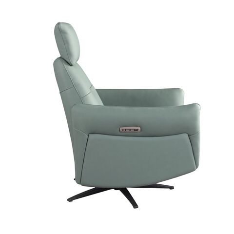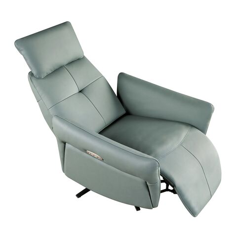 Вращающееся кресло-реклайнер 5174 из бирюзово-зелёной кожи