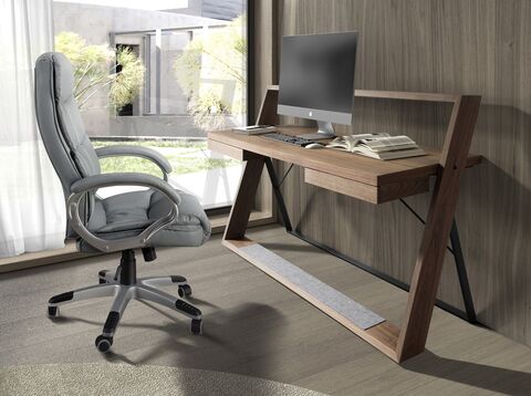 Вращающееся офисное кресло с современным дизайном, сиденье и спинка которого обиты серой кожзаменителем. Имеет подлокотники, что делает его более удобным. Благодаря ножкам из серебристо-серого ПВХ и регулируемому по высоте сиденью, оно станет неотъемлемой частью вашего рабочего пространства, не оставляя в стороне самый авангардный стиль. Его колесики обеспечат дополнительную практичность, необходимую для работы или учебы.