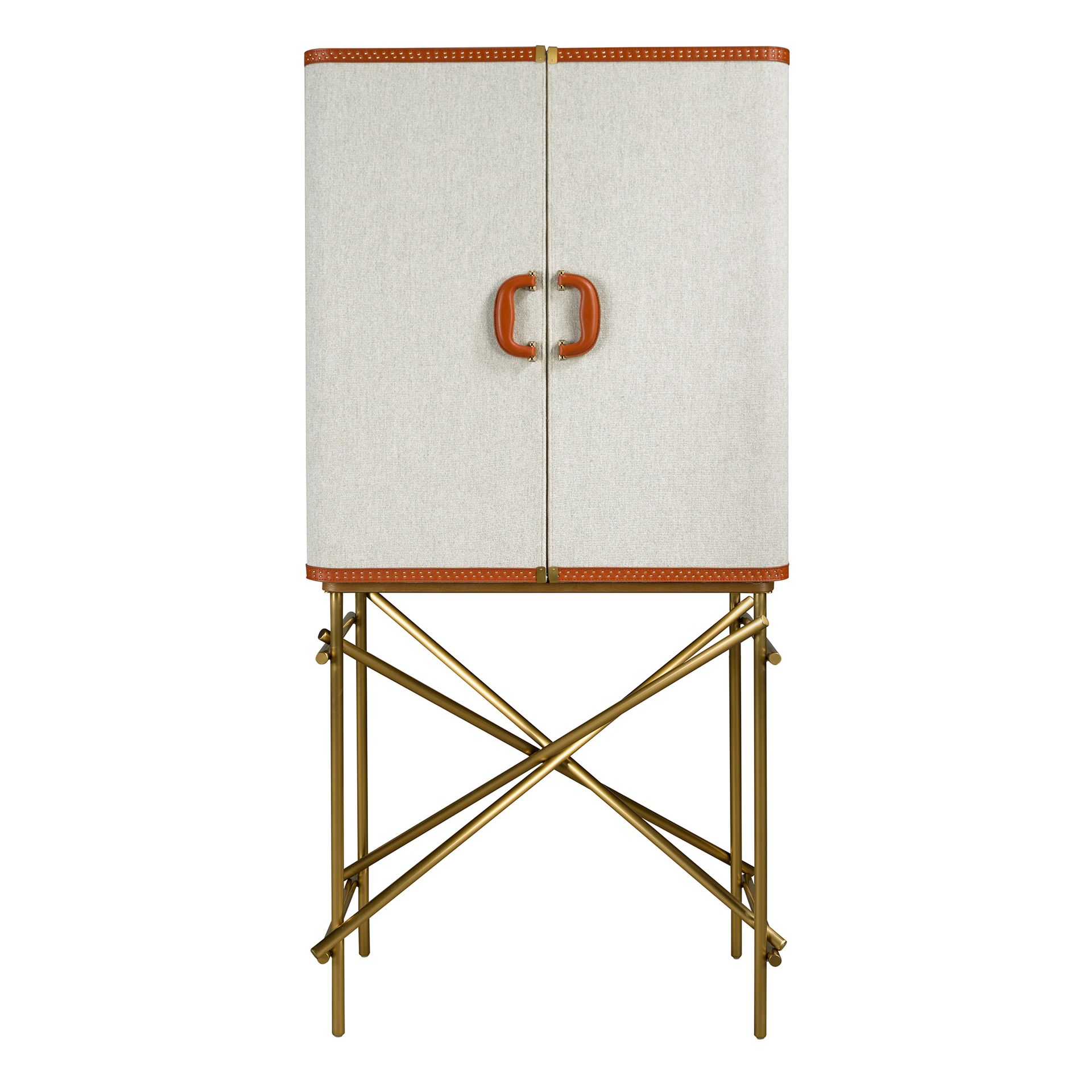 Высокий буфет 3272 из ткани, ореха и полированной золотистой стали