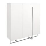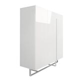 Высокий буфет CP1302-F — универсальный и нужный предмет мебели для современной городской квартиры от фабрики Angel Cerda. Буфет однозначно убеждает в своей «полезности». Сделав его высоким, дизайнеры дали владельцу возможность шире подойти к решению задачи о том, как можно использовать этот предмет мебели. Ведь с учетом такой высокой конструкции, в нем получится хранить не только «нужное» на нижних полках, но и то, что используется редко, — для этого как раз кстати «самый верхний этаж». Буфет выполнен в стиле минимализм. Каркас разделен вертикальной перегородкой на две части, где правая закрывается на двухстворчатые двери, а слева — дверь одинарная. Внутри отделений находится по две полки на одинаковой высоте по отношению друг к другу. Двери оснащены доводчиками на открывание и закрывание, поэтому не имеют ручек. Материал изготовления — лакированный МДФ. Впереди на фасаде справа имеется декоративная панель из хромированной стали. Она не является продолжением опоры, а лишь создает обманчивое ощущение этого. Стойка выполнена из хромированной стали. Она имеет рамочную конструкцию, поддерживая буфет вдоль и поперек, гарантируя надежность и устойчивость. Размеры буфета: ширина — 120 см, высота — 135 см, глубина — 42 см. Вес составляет 89 кг. Потребуется самостоятельная сборка. Рекомендуется участие двух человек. Инструкция и крепеж входят в комплектацию. Отделка - лак RAL9003 Gloss White.