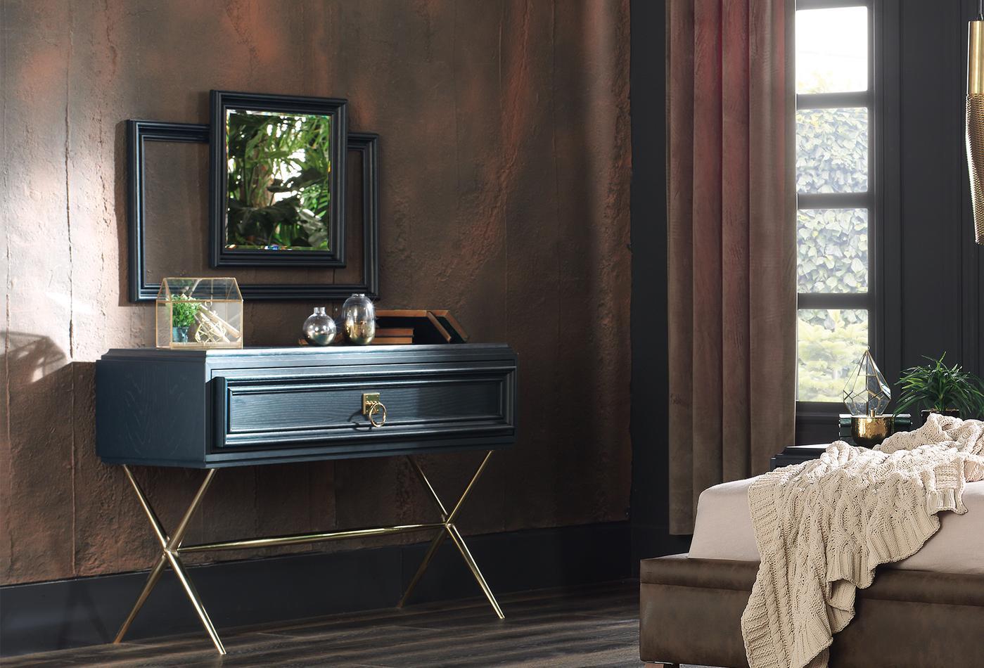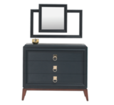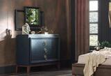 Зеркало Elegante современной формы прекрасно дополняет интерьер. Деревянная рама выполнена в особом цвете — «Прусская Лазурь».