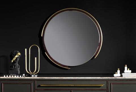 Зеркало натурального цвета на раме из МДФ толщиной 18 мм с металлическими деталями цвета состаренного золота.