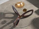 Журнальный стол Angel Cerda CT16211 от фабрики Angel Cerda – завораживающий дизайн, максимум красоты дерева. Журнальный стол Angel Cerda CT16211 влюбляет в себя с первой секунды. Удивительная, уникальная, потрясающе красивая стойка из натурального дерева не дает отвести взгляд. Она настолько мастерски исполнена, что напоминает сказочный цветок. Такая модель безусловно должна находиться в самом центре гостиной, чтобы радовать взгляд с любого ракурса. Журнальный стол имеет круглую форму. Столешница полностью прозрачная, выполнена из ударопрочного стекла. Боковые грани скруглены, чтобы не доставлять дискомфорт при эксплуатации. Удерживает столешницу деревянная стойка. Она выполнена из массива, покрытого коричневым лаком. Лак придает поверхности не только глянец, но и защищает дерево от механических повреждений, влаги. Конструкция стойки состоит из трех одинаковых по размеру обтекаемых рамочных фигур, напоминающих лепестки цветка. В центре они соединены крепежом, удерживающим их на нужном расстоянии друг от друга. «Лепестки» расположены симметрично и по кругу, тем самым, обеспечивая равномерное распределение веса и устойчивость изделия. Масса стола составляет 64 кг. Размеры: диаметр – 120 см, высота – 38 см. Стекло поставляется отдельно. Для его монтажа в комплектацию включен крепеж, инструкция.