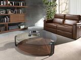 Журнальный стол MH1904A-NOGAL от фабрики Angel Cerda – необычная форма для больших гостиных. Журнальный стол MH1904A-NOGAL заинтересует каждого, кто неравнодушен к необычной мебели, когда пространство позволяет не думать о габаритах. В этой модели необычна как сама конструкция, так и ее форма. Стол создан, чтобы удивлять и находится в центре большой гостиной, потому как совсем нескромен в своем размере. Стол имеет форму обтекаемого треугольника. Столешница выполнена из ударопрочного прозрачного стекла. Боковые грани ее скруглены так, чтобы исключить порезы при эксплуатации. Стекло соединено тремя парными металлическими ножками с деревянным основанием. Оно сделано из МДФ и шпона орехового дерева (цвет базового фабричного варианта), имеет ту же форму и размер, что и столешница. Древесный рисунок выполнен в виде треугольников. Этот нижний ярус служит не только опорой для стола, но также может использоваться в качестве полки, второй столешницы. Стойки окрашены в черный цвет эпоксидной краской. Благодаря прочности металла, обеспечивается надежность, стойкость к высоким весовым нагрузкам. Масса стола составляет 39 кг. Размеры: длина – 135 см, ширина – 135 см, высота – 32 см. Потребуется самостоятельная сборка. Инструкция и крепеж входят в комплектацию.