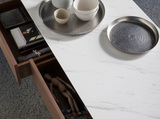 Журнальный столик в современном стиле с белой керамической столешницей 4 мм и деревянной основой из МДФ и натурального орехового шпона толщиной 0,5 мм с двумя ящиками с системой открывания нажатием и плавным закрытием. Простота и элегантность этого журнального столика идеально подходят для того, чтобы привнести этот элегантный и изысканный штрих в вашу гостиную. Каждая деталь призвана предложить вам максимальный комфорт и функциональность, не забывая при этом о стиле.