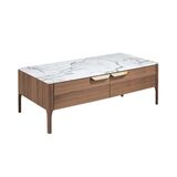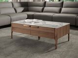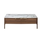 Журнальный столик CP1806-G от фабрики Angel Cerda – когда красота дерева и мрамора соединены в одном изделии. Журнальный столик CP1806-G – это очаровательная модель с утонченным дизайном. Здесь дизайнеры уделили внимание деталям. Выделенные ножки, изящные ручки, мраморная столешница – все это выполнено настолько гармонично, что в изделие влюбляешься с первого взгляда. Такой стол подойдет для гостиных, в которых преобладает мебель из дерева, а интерьер соответствует европейскому модерну. Стол имеет прямоугольную форму. Столешница двухслойная – состоит из керамической пластины цветом белого мрамора, которая покрыта прозрачным ударопрочным стеклом. Так обеспечивается не только красота поверхности, но и ее долговечность, простота в уходе. Каркас сделан из МДФ со шпоном орехового дерева (для базового фабричного варианта). В центре – два выдвижных ящика с ручками и мягкой системой закрытия. Поддерживают стол четыре деревянные ножки. Традиционное расположение обеспечивает равномерное распределение веса изделия, а прочность ореха гарантирует стойкость к высоким весовым нагрузкам. Кроме того, сама конструкция ножек, проходящая вдоль каркаса, обеспечит долгую эксплуатацию, надежность. Масса стола составляет 56 кг. Размеры: длина – 120 см, ширина – 60 см, высота – 40 см. Изделие поставляется в разобранном виде. Для сборки в комплектацию входят крепеж, инструкция. В коллекцию CP1806 включены также прикроватная тумбочка, письменный стол, комод, угловой столик, тумба под ТВ. У всех изделий аналогичный дизайн.